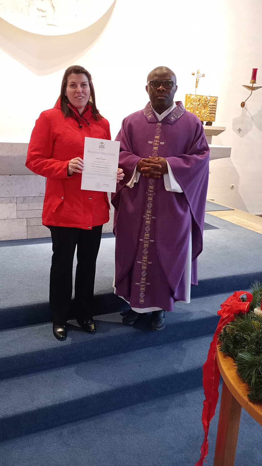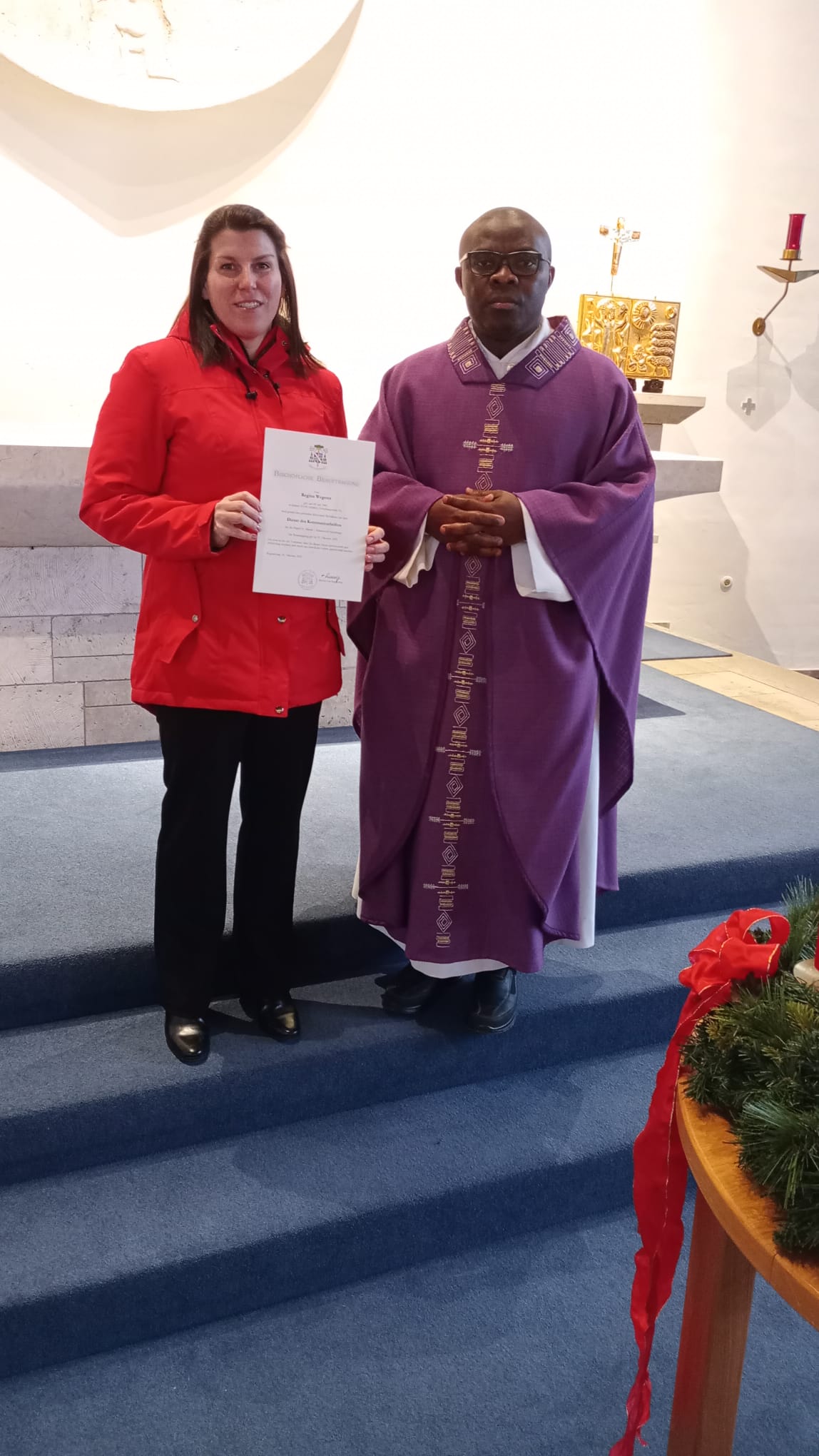 Am 4. Adventssonntag wurde Frau Regina Wegerer als Kommunionhelferin in der Pfarrei Altfalter von Pfarrer Emmanuel Okoro eingeführt.